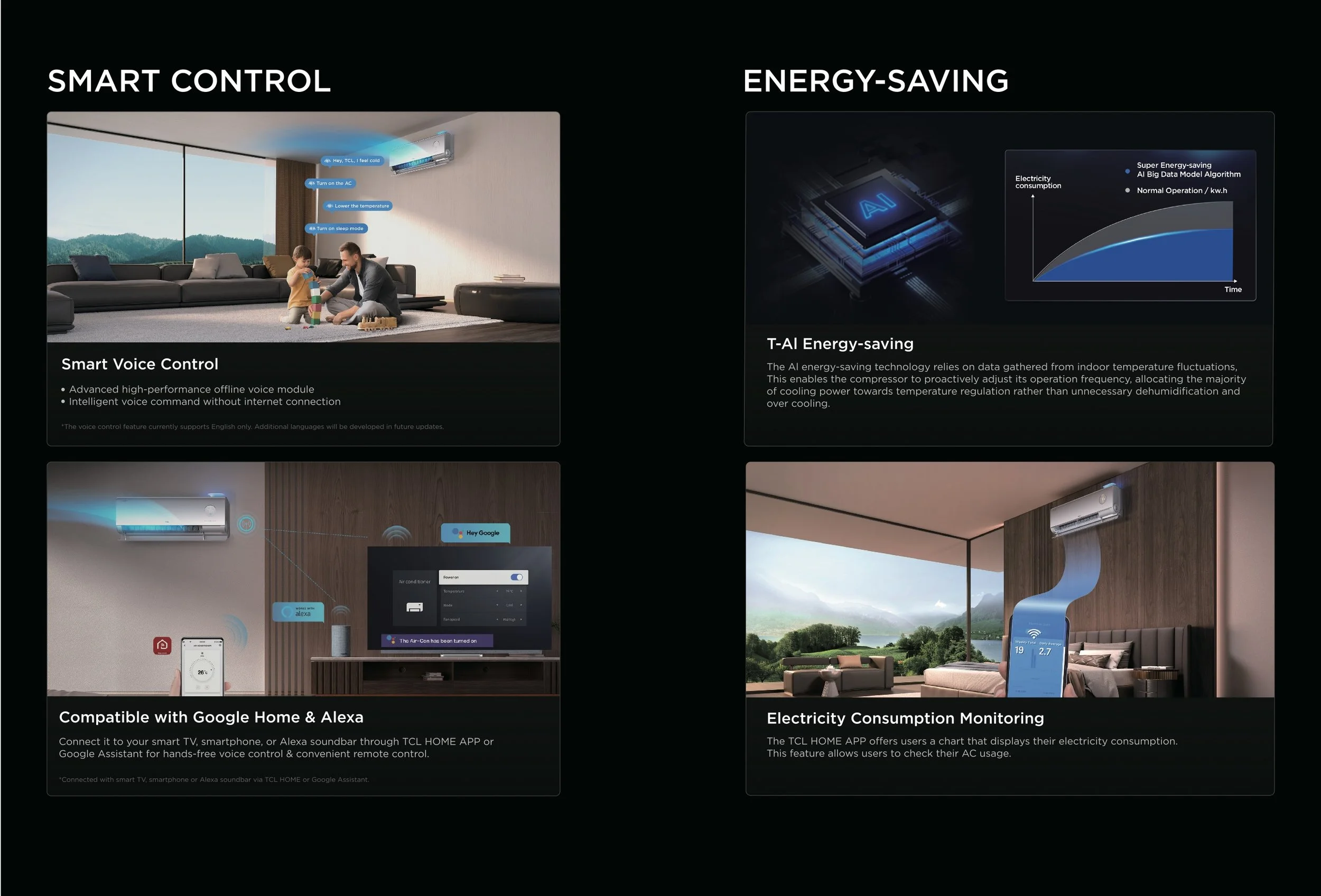 Manage your comfort anytime through the TCL Home App. Adjust settings, view air volume, and monitor energy use from anywhere.